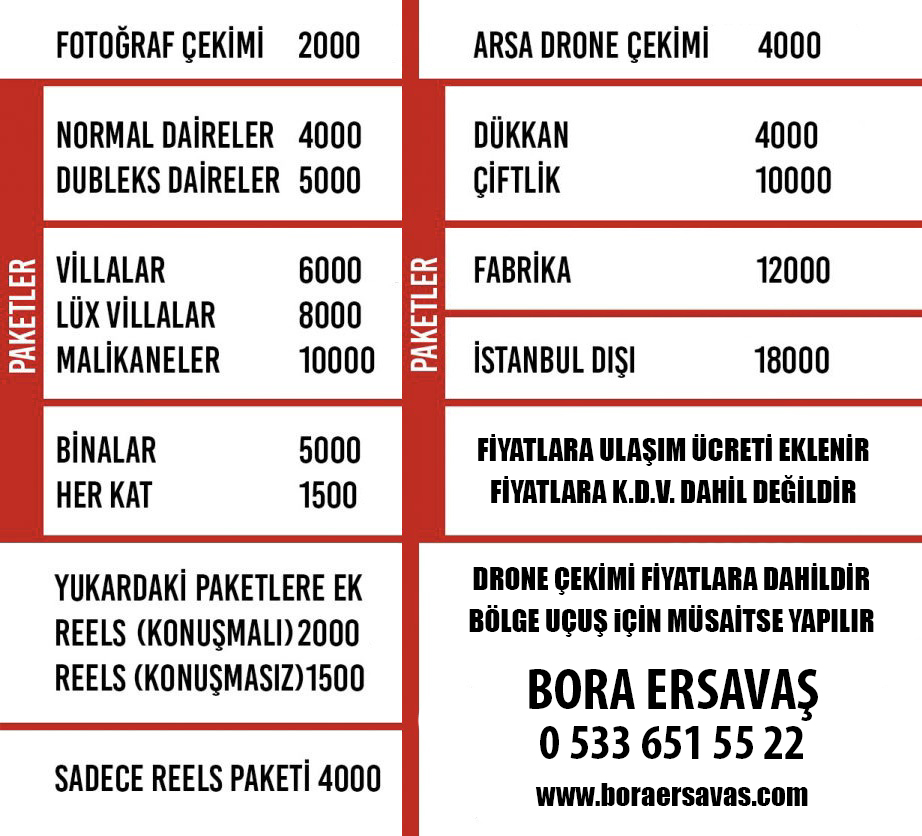 Fotoğraf Çekim Fiyatları 12 Aralık 2018 By bersavas In Blog No Comments Fiyatlarımız Projelere göre farklılık göstermektedir. Lütfen Proje Detaylarını iletip fiyat alınız. Etiketler: drone çekimi, drone emlak çekimi, drone fiyat, drone ile emlak çekimi, emlak çekim fiyatları